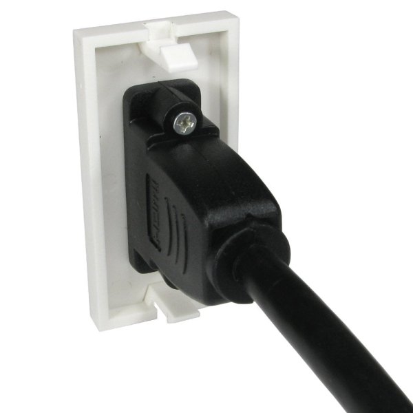 The HDMI AV module has a precut slot to fit the HDMI stub perfectly, can be used with faceplates designed to fit 50mm x 25mm clip in modules.